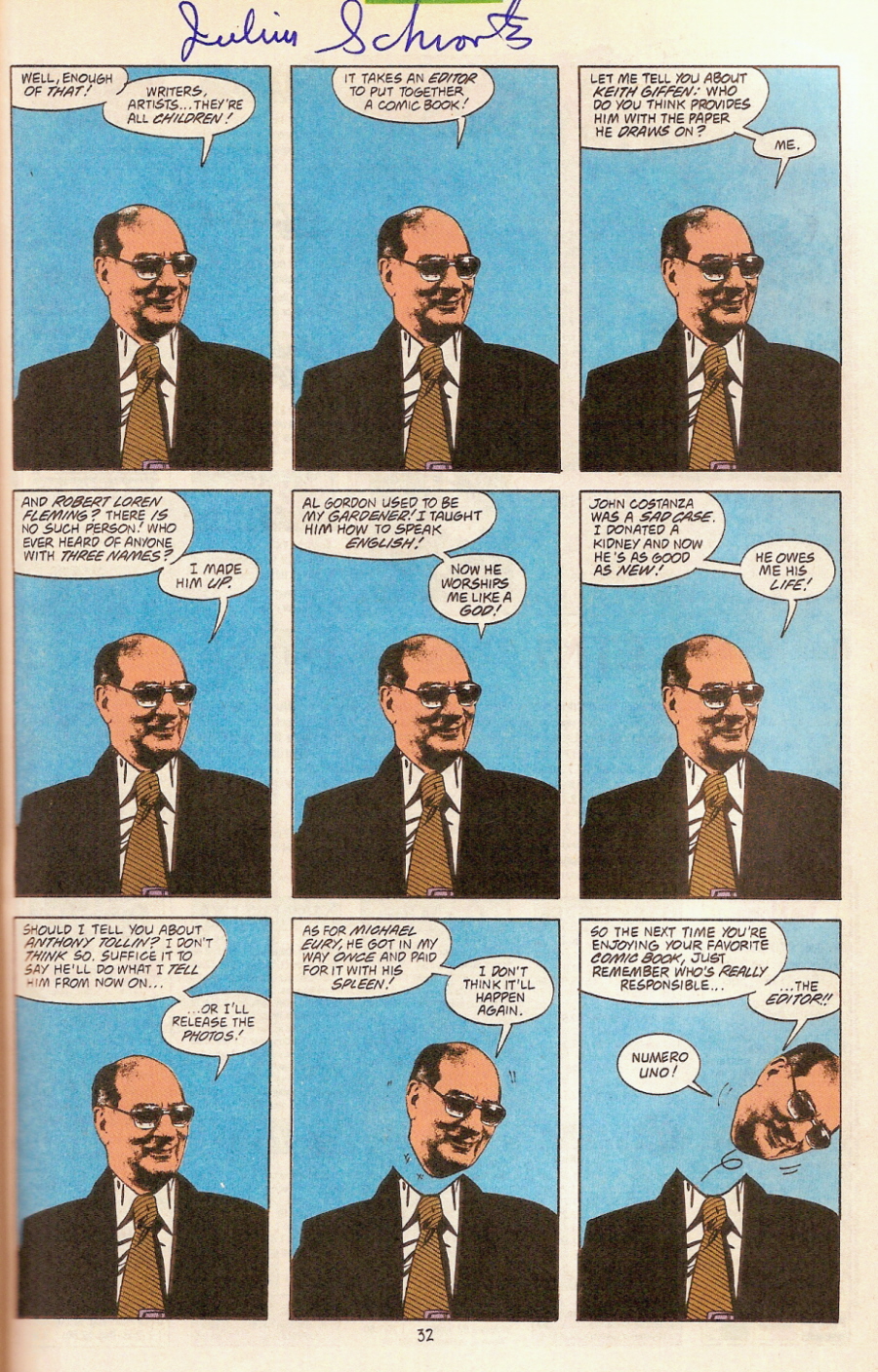 5 "CAPTAIN AMERICA wrapped in the flag, covered in napalm, smoked like a blunt by FIN FANG FOOM. My statement on the Iraq War. Make this poignant. Single tear coming from Cap's eye. Pollution is so wrong."
